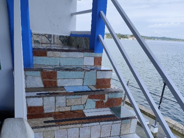 Mit dem Touristenbus geht es vom Rio Dulce nach Flores. Als wir an der Haltestelle ankommen warten die Busse schon. Heute fährt ein Bus nach Antigua und einer nach Flores. Unzählige Mochilleros, so werden hier die Rucksacktouristen genannt, tummeln sich rund um die Haltestelle. Kurz vor der Abfahrt werden die Busse beladen und wir haben heute Glück, es sind nur 9 Leute, mit denen wir uns den Bus teilen müssen. Gute 3 Stunden dauert die Fahrt und mit dem Tucktuck geht es dann in unser Hotel. Das Hotel liegt direkt am See und die Treppen in dem Hotel sind mit Fliesenbruchstücken gefliest. Eine interessante und schöne Art des Recyclings.