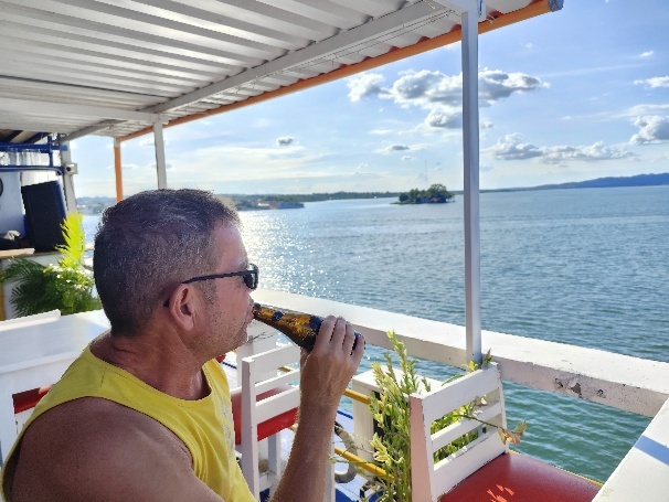 Wir kehren zurück zum Hafen. Die Zeit bis zur Abfahrt des Lanchas verkürzen wir uns mit einem Getränk.