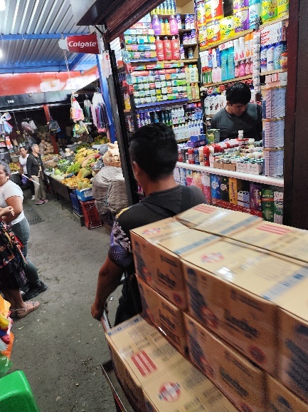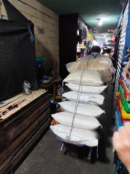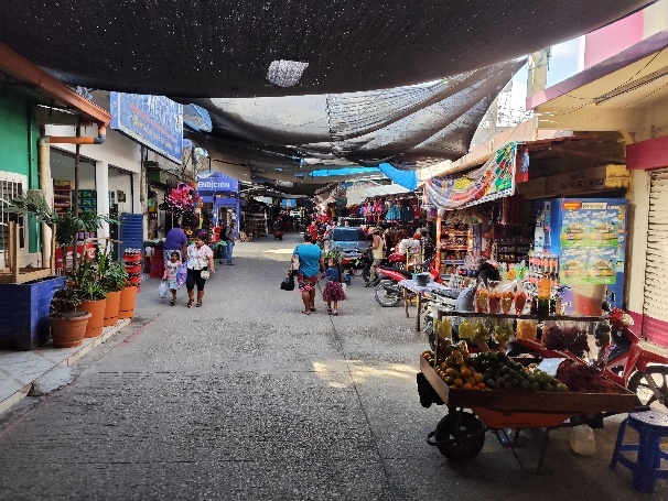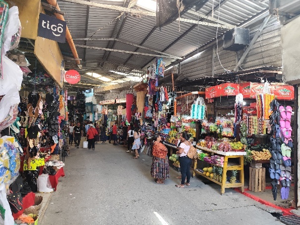 Auf dem Festland interessiert uns besonders der Mercado Viejo, der alte Markt. Der Eingang liegt direkt neben dem Busbahnhof. Von hier geht es mit Minivans und „Chickenbusses“ in die nähere und fernere Umgebung. Der Markt liegt zwischen 2 Straßen. Entlang dieser Straßen befinden sich bereits viele Geschäfte. Beide Straßen sind aber über unzählige schmale Gänge verbunden, die sich wie ein Gitter aufspannen. Hier kann man sich richtig verlaufen und wo man was findet ist auch nicht herauszufinden.