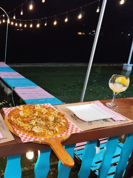 Heute Abend gibt es Pizza mit Aussicht. Der See hat aktuell Hochwasser und die Promenade ist 20 cm überspült. Pragmatisch werden kleine mobile Brücken aufgestellt. Im Sommer kann man die Promenade wieder nutzen.