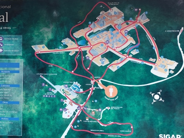 Yaxha ist weniger populär als Tikal. Eine Karte am Eingang gibt einen guten Überblick über die Maya Stätte.