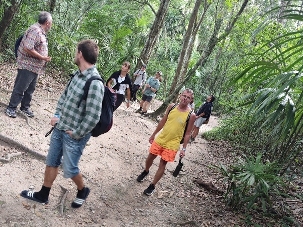 Auf dem Weg lernen wir noch die Fauna kennen und lernen das Zählen auf Maya. Es gibt nur 3 Symbole für Zahlen und das System ist kein Dezimales, sondern basiert auf 20.