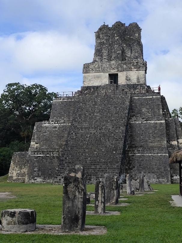 Auf dem weiteren Weg erfahren wir, dass in Tikal nur die Könige und Gefolge gewohnt haben, die übrigen Mayas lebten im umgebenden Dschungel. Wir erreichen den Gran Plaza mit den Tempeln 1 und 2. Die „Grabsteine“ sind keine solchen, sondern jeder König hat einen solchen Stein, auf dem seine Geschichte niedergeschrieben oder besser eingemeißelt ist. Anhand dieser Steine ist heute sehr viel über die Geschichte der Mayas bekannt.