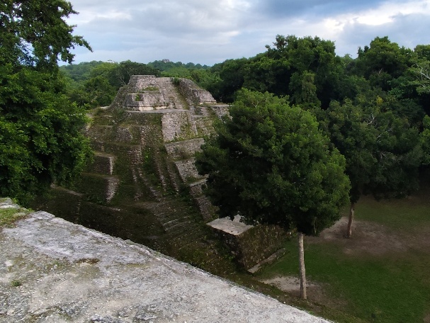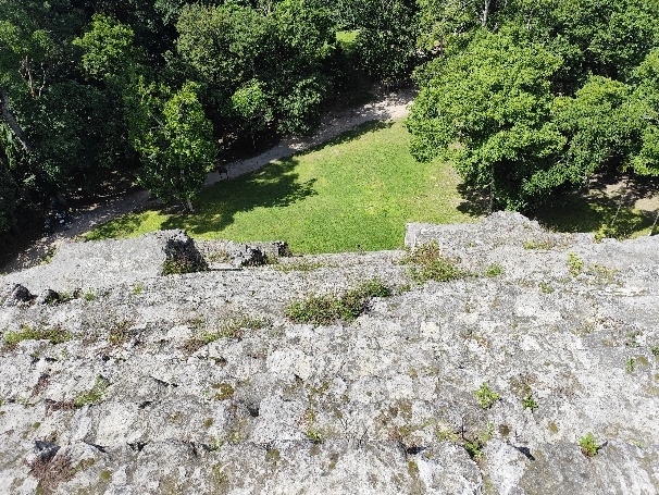 Südlich des Gran Plaza liegt die Akropolis Central. Von hier bekommen wir einen tollen Überblich über die Gran Plaza, Tempel 1 und 2 sowie die Akropolis del Norte.