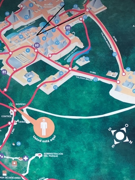 Am 20.März und am 21.September sind Tag und Nacht gleich lang, d.h. die Sonne geht, von Tempel 1 gesehen, direkt hinter Tempel 2 auf, während am 21. Juni die Sonne direkt hinter Tempel 3 aufgeht. Hierzu liegt Tempel 3 ca. 26° zur Verbindunglinie zwischen Tempel 1 und 2 südlich versetzt. Spätere Mayastätten hatten auch einen nördlich versetzen Tempel, um den 21. Dezember zu bestimmen. Mit dem Sonnenuntergang gab noch Zeitfenster für Regen- und Trockenzeit, aber das haben wir nicht wirklich behalten.