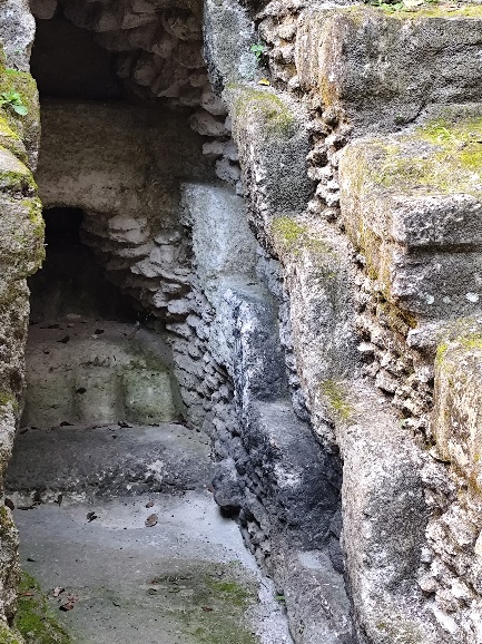 Vorsicht beim Auf- und Abstieg. Einige Stufen sind stark beschädigt und man muss sich entlang der intakten Stufen nach oben arbeiten.