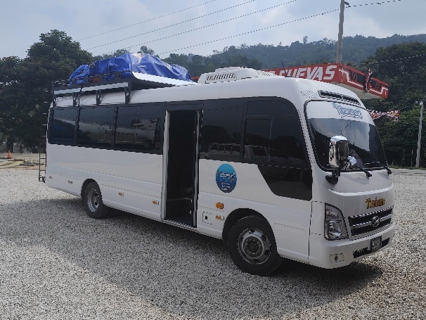 Am Donnerstag, den 6.11., haben für 8:00h den Bus nach Lanquin gebucht. Eine halbe Stunde vorher sind wir an der Haltestelle und der Bus kommt wenige Minuten später. Uns schwant nichts Gutes, als unser Gepäck aufs Dach geräumt wird, wir sind aber mit die Ersten und können uns einen guten Sitzplatz sichern. Der Bus ist rappelvoll. 32 Leute incl. Fahrer. Auch die Notsitze werden besetzt. Diese Sitze werden ausgeklappt, wenn der Bus voll ist, so dass kein Gang mehr im Bus ist.