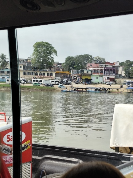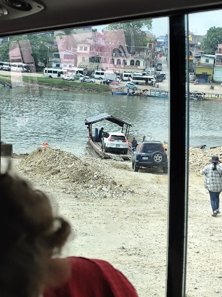 Die Fahrt ist lang und tatsächlich müssen wir irgendwann auch auf eine Fähre. Die „Konstruktion“ des Fähranlegers erinnert uns an Kolumbien.
