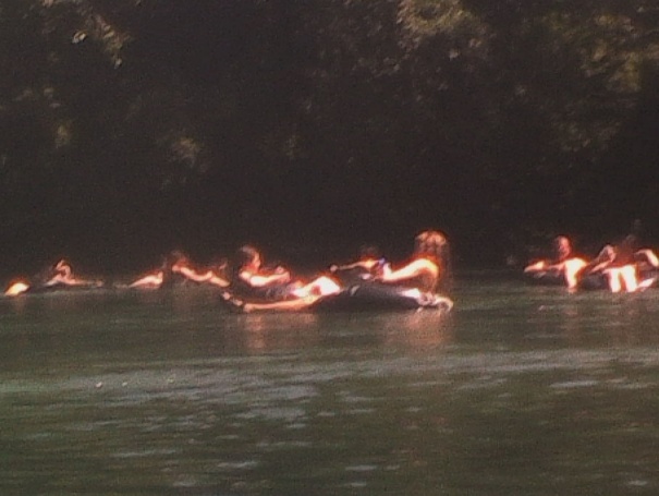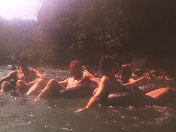 Nach etwa einer Stunde kommen wir wieder an Tageslicht und wärmen uns in der Sonne. Weiter geht es mit Tubing. In aufgeblasenen LKW-Schläuchen lassen wir uns den Fluss herunter treiben. Kurz nach dem Start werfen uns ein paar junge Mayas kalte Bierdosen zu. Nachdem unsere Körper wieder aufgewärmt sind schmeckt das kalte Bier richtig gut.
