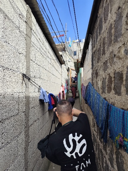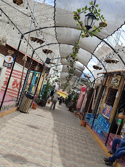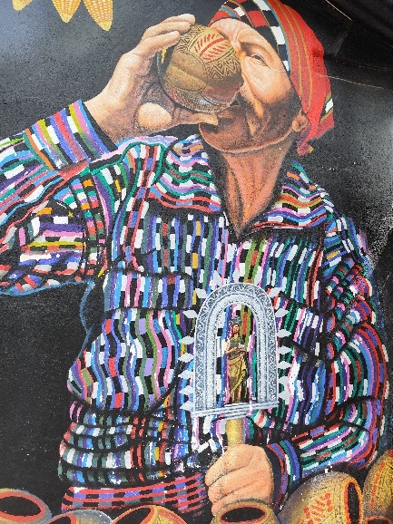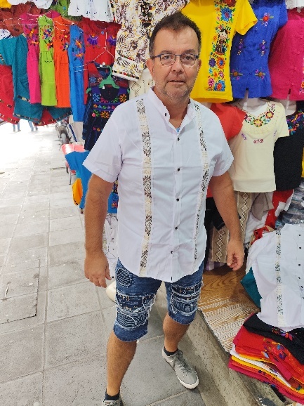 Hier tragen die Männer, wie im mittleren Foto zu sehen bunten Hemden mit weisen Hosen. Die Zeichnungen an den Häuser sind äußerst detailliert und schön.