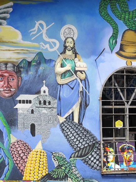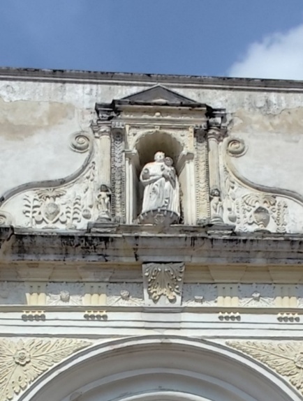 Viel über die Geschichte kann man auch anhand der reichhaltig verzierten Fassaden lernen. Zwar dominieren die christlichen Symbole in den Fassaden, immer wieder sind auch Maya Elemente wie die Sonne, Mais, Kakao und ähnliche Symbole in den Fassaden zu finden. Tatsächlich ist ein Großteil der Bevölkerung christlich, verbindet den Glauben aber mit ritualen aus der Mayazeit. Ein Löwe mit Affengesicht, Mais und Kakao an San Jose Kirche oder auch königliche Symbole haben wir tatsächlich nur mit unserem Guide erkannt.