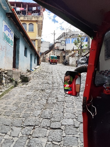 Am Anleger finden wir ein Tucktuck, dass uns für 300 Q 2 Stunden lang durch San Pedro und zu insgesamt 5 Aussichtspunkten fährt.