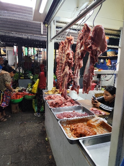 Es gibt Alles. Fleisch, Blumen, Obst, Gemüse, Kleidung und Haushaltswaren. Ein ganz anderes Bild als die für Touristen herausgeputzte Insel.