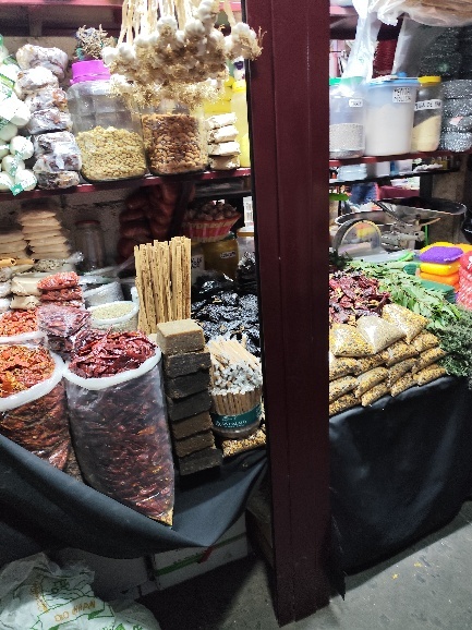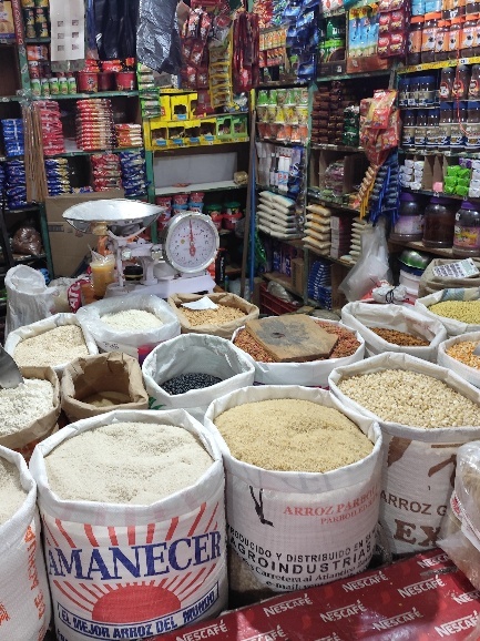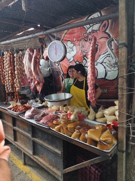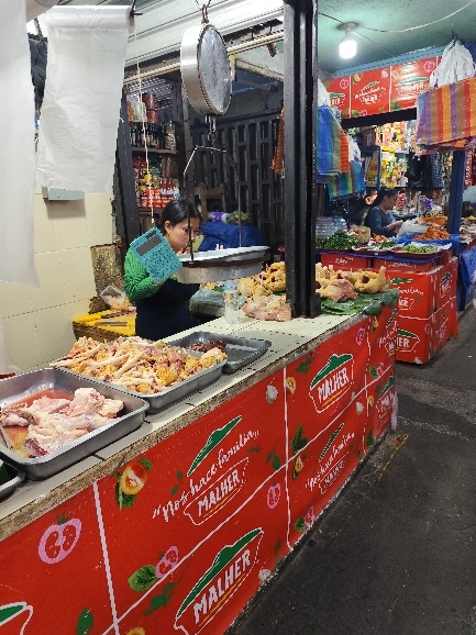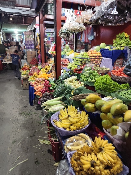 Auf dem Markt gibt es Alles. Fleisch, Gewürze, Cerealien, Obst, Gemüse, Blumen, Fisch aber auch Kleidung und Haushaltswaren. Auch gekochtes Essen zum Mitnehmen oder zum sofortigen Verzehr.