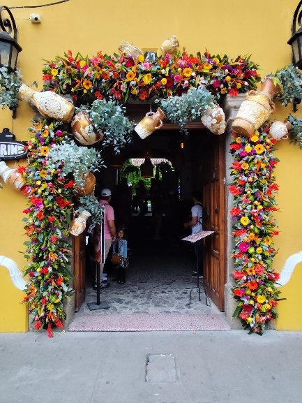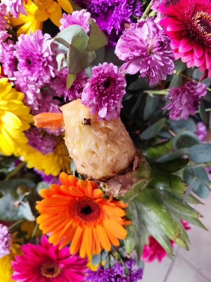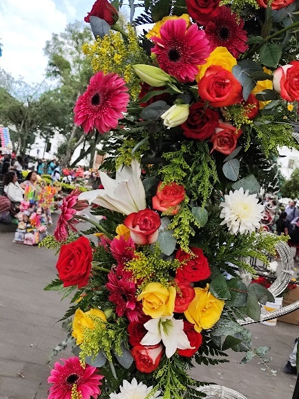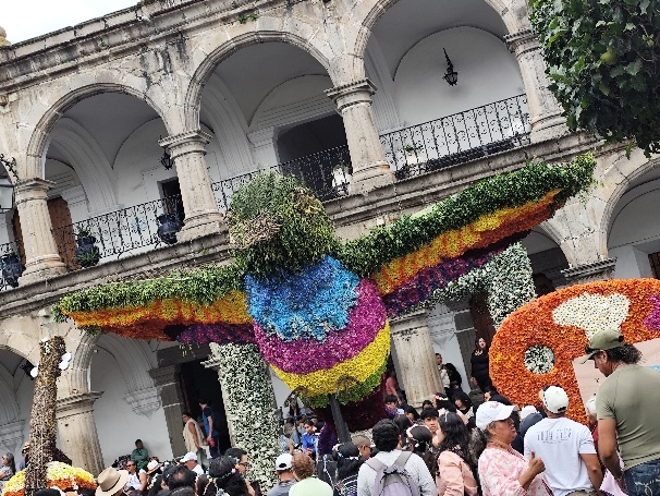 Sämtlich Eingänge sind geschmückt. Manchmal lohnt es sich auch ganz genau hinzuschauen, dann findet man einen, aus einer Ananas geschnitzten, Vogel im Blumenbouquet. Und überall werden Selfie vor den Blumen gemacht. Die Stadt ist voll und besonders die Eiswagen finden wir neben den Blumen richtig cool.