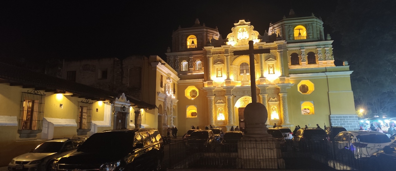 Um 15:00 Uhr können wir uns Hotel einchecken und nachdem wir uns eingerichtet haben, kehren wir am frühen Abend in die Stadt zurück. An der Kirche „La Merced“ gibt es sogenannte „Comodores ambulates“, d.h. fliegende Essensstände. Es riecht super lecker. Da wir aber für morgen unsere Tour auf den Acatenango gebucht haben, möchten wir Montezuma nicht herausfordern und gehen in ein gut bewertetes Restaurant.