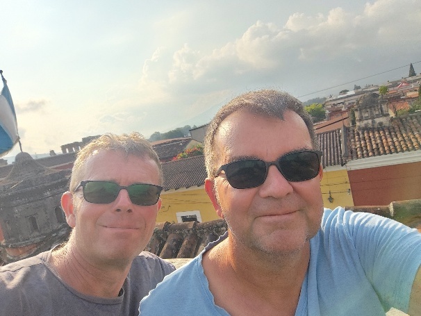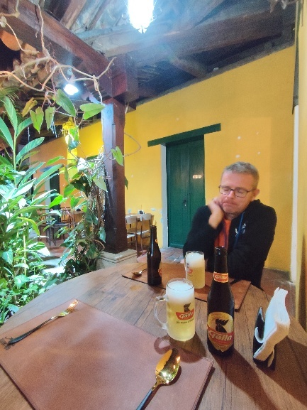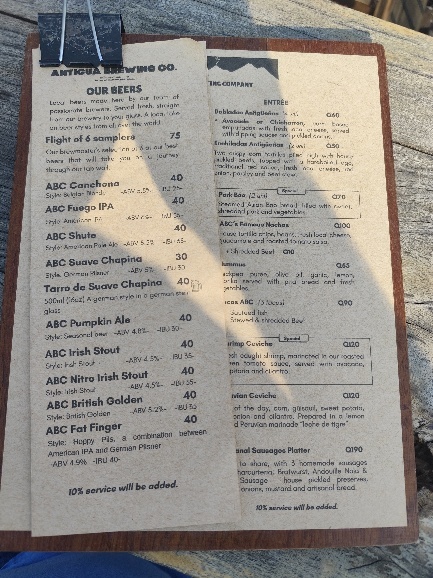 Unsere Stadtführung endet und wir erfrischen uns, auf Anraten unseres Guides, in der ABC. Die Antigua Brewing Company ist eine Gruppe von einheimischen und ausländischen Brauern und Bierliebhabern, die sich der Aufgabe verschrieben haben, in Guatemala handwerklich gebrautes Bier von höchster Qualität anzubieten. Die Dachterrasse ist super und wir entscheiden uns für ein deutsches Pils. Tatsächlich schmeckt es richtig gut.