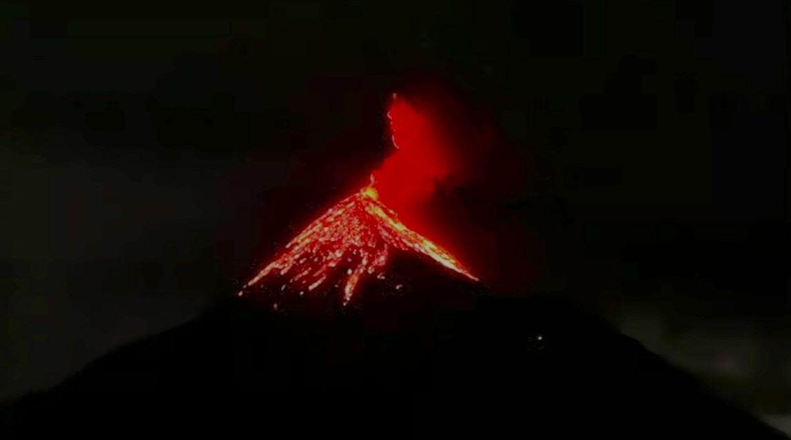 Nach Einbruch der Dunkelheit, soll man erkennen können, dass mit dem Rauch auch heiße Lava ausgespuckt wird, der Rauch und die Spitze glühen dann rot.