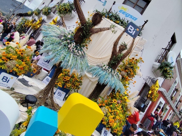 Namhafte Firmen nutzen das Fest um Ihre Logos ebenfalls im Blumenschmuck zu präsentieren.