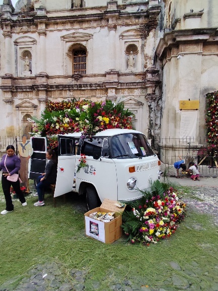 Hajo freut sich aber auf jeden Fall über die Blumen, obschon wir heute nur den Aufbau sehen können. Das Fest findet Samstag und Sonntag statt, allerdings haben wir für Samstag einen Hike (Wanderung) auf den Acatenango gebucht. Der Sonntag ist dann fürs Blumenfest reserviert.