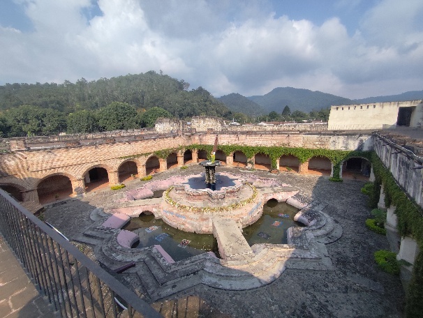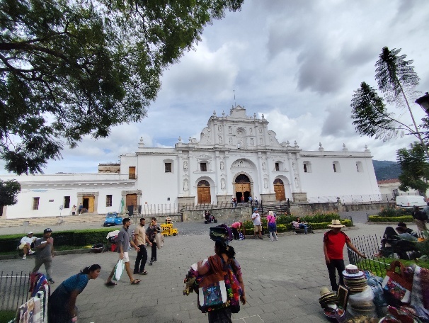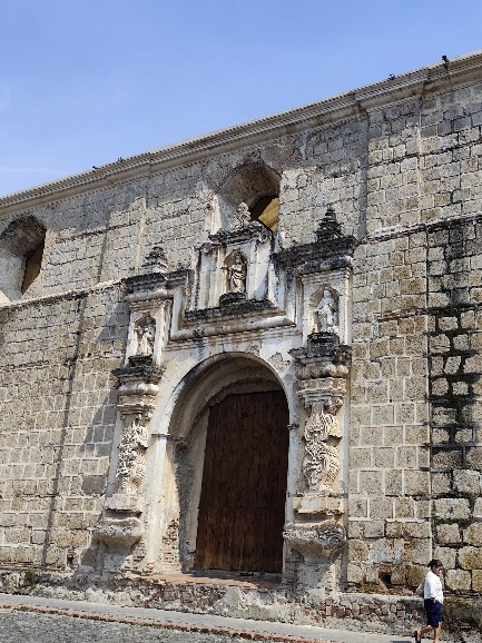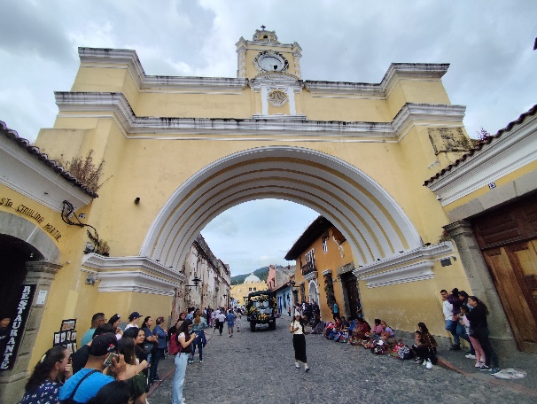 Es geht zurück zum Central Plaza- vorbei an dem Torbogen, der ein Wahrzeichen Antiguas ist. Es ist aber kein Torbogen, sondern eine Brücke. Sie gehört zum Convento de Sta. Catalina de Martir. Das Kloster der Heiligen Katharina der Märtyrerin wurde 1609 gegründet und beherbergte bald eine große Anzahl von Nonnen. 1694 wurde der berühmte Katharinenbogen errichtet, um das Kloster über eine Straße mit einer Novizenschule zu verbinden. Nach den Erdbeben von 1773 wurde das Kloster aufgegeben, und auf dem Gelände befinden sich heute Hotels, Bars und Privathäuser. Die Brücke ist für die Öffentlichkeit heute nicht mehr zugänglich.