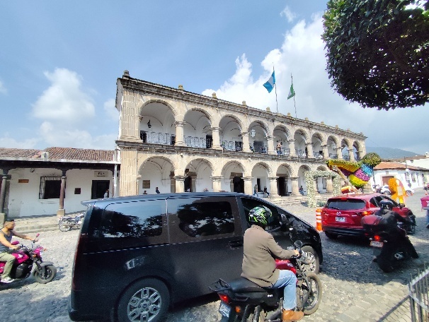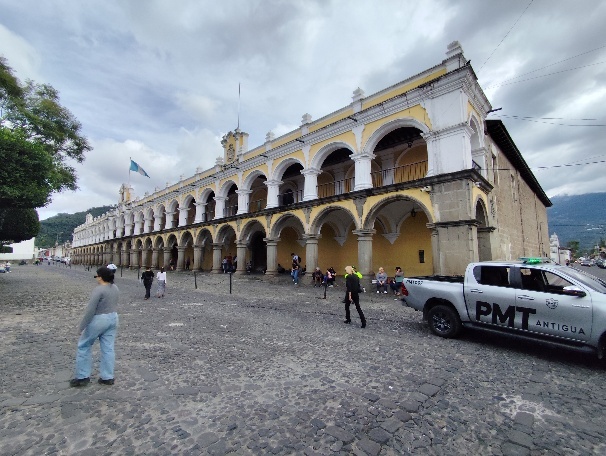 Wir erfahren, dass Antigua im Kern einen typisch römischen Grundriss hat. Es gibt 8 Straßen und 8 Alleen, die senkrecht zueinander verlaufen. In der Mitte, am Central Park, befindet sich das Zentrum der Macht. Hier befindet sich eine Kirche, das Militär, Die Stadtverwaltung und der Commerz, die finanzielle Elite der Stadt. So auch in Antigua.