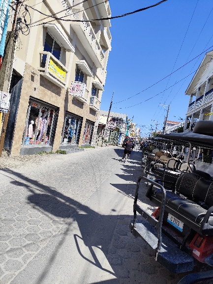 Cay Caulker ist komplett touristisch und besonders bei Rucksacktouristen beliebt. Die Straßen sind nicht befestigt und sobald ein Golfcart vorbei rauscht, staubt es gewaltig, weshalb sämtliche Auslagen in den Geschäften eine gehörige Staubschicht aufweisen. Die Restaurants sind vielfältig und die Insel scheint nett zu sein.