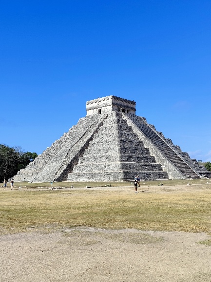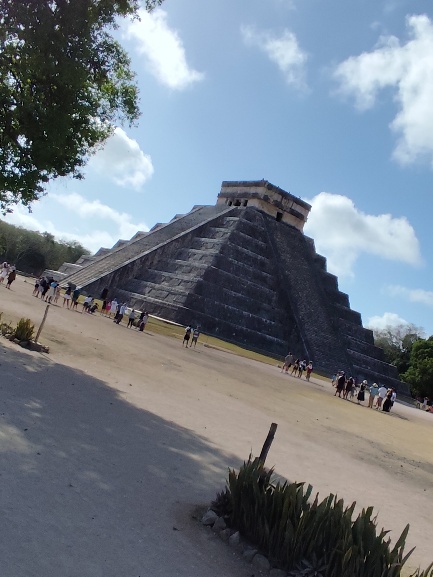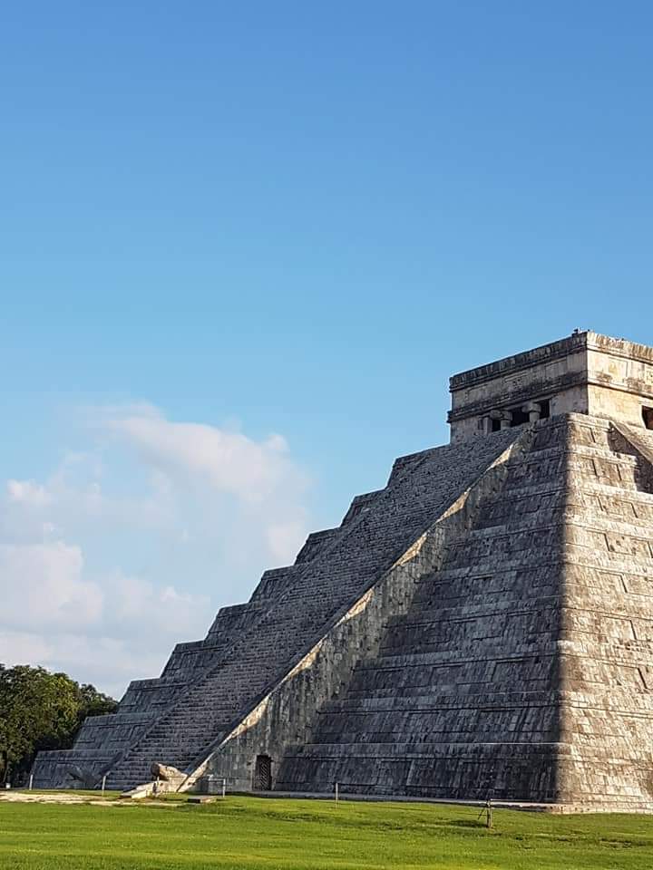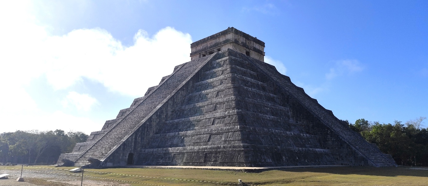 Vom Eingang aus kommen wir direkt zur Hauptattraktion Chichen Itzas, dem Castillo. Im Laufe der Führung bekommen wir es von allen Seiten zu sehen.