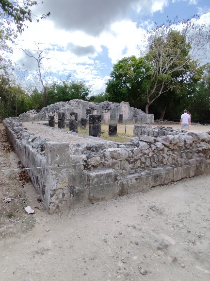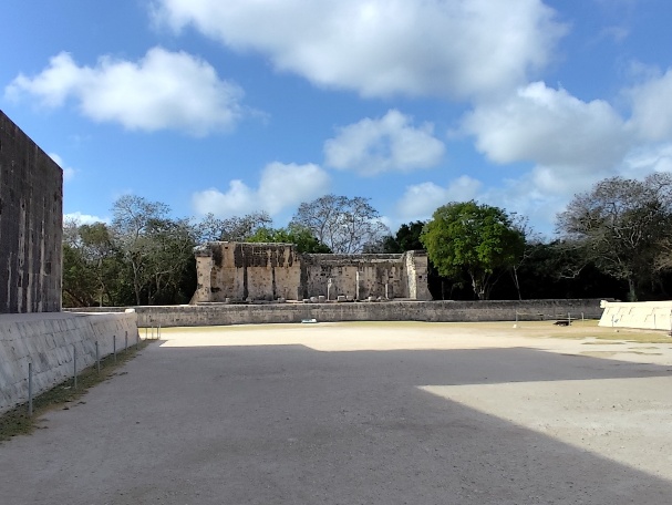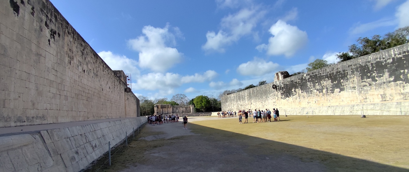 Westlich des Castillo liegt der größte Ballspielplatz, der bisher in einer Mayastätte entdeckt wurde. Hier finden sich auch die steinernen Ringe an den aufgehenden Wänden, die Tore. Bei den Mayastätten, die wir bisher besucht haben, waren diese Ringe zerstört.