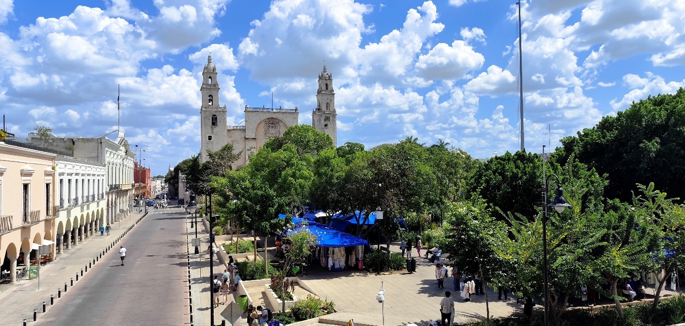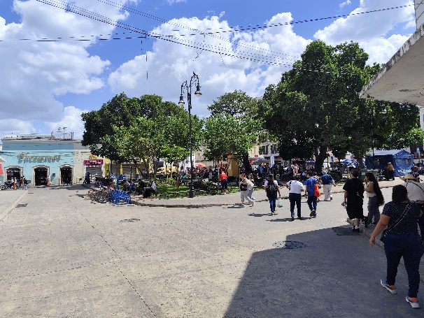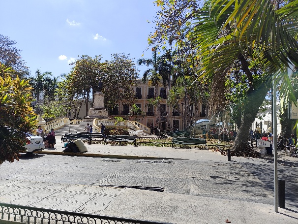 Wir starten unseren Rundgang am Parque de Santa Lucia. Zunächst erfahren wir einiges über die die Gründung der Stadt und deren Geschichte. Die alte Maya-Stadt Ti’ho’ („zu fünf“) wurde am 6. Januar 1542 durch Francisco de Montejo dem Jüngeren in Mérida umbenannt.