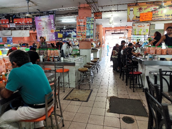 Weiter geht es nach Merida, der Hauptstadt des Bundestaates Yucatan. Bereits um 13:00h treffen wir in Merida ein und finden nach etwas suchen auch die Parkplatzzufahrt zu unserem Hotel. Unsere Zimmer sind noch nicht fertig, wobei der recht unfreundliche Mitarbeiter sich nicht mal die Mühe macht nachzuschauen. Check-In erst ab 15:00h. Gegenüber gibt es einen kleinen, einfachen Imbiss. Plastiktische und -stühle und leider auch kein Bier. Unser Besuch möchte nichts Essen, keinen Hunger. Ok. Tom und Hajo bestellen sich einen Burger. 15 Minuten später kommt unser Essen, nun gelüstetet es dem Besuch doch nach Burger, also bestellen wir einen Burger nach.