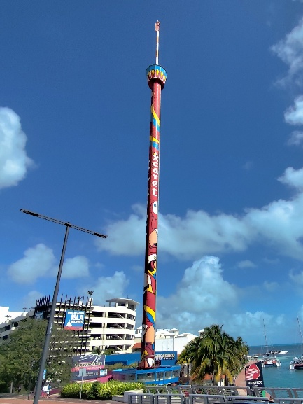 Nachdem wir unseren Leihwagen am Flughafen abgegeben haben, fahren wir mit dem Flughafenbus zurück in die Stadt. Am Busterminal startet auch unser Hop-on Hop-off Bus. Wir schaffen es knapp, den Touribus um 10:00h zu bekommen. Der Bus fährt aus der Stadt in die Hotelzone, in der sich monströse Hotelbauten mit Shoppingmals, Restaurants und Bars abwechseln.