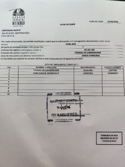 Es ist Montag, der 23.03., und nach einer ausgiebigen Dusche machen wir die Leinen los. 400 sm liegen von uns bis Guanaja. Da das Wetter in den letzten Wochen immer wieder schlagartig umgeschlagen ist, entscheiden wir uns, entlang der Küste Richtung Süden zu fahren, im Zweifelsfall können wir in einer Bucht unter Gelber Flagge abwettern.