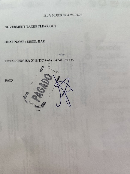 Das Paket ist da und der Tiefenmesser ist schnell ausgetauscht und der Windmesser repariert. Wie vom Agenten gefordert, melden wir uns 48h vor unserer gewünschten Abfahrt zum Ausklarieren an. Es scheint allerdings schwierig zu sein, da wir montags abreisen wollen und die Behörden sonntags geschlossen haben. Am Sonntag können wir unsere Papiere dann aber doch im Büro abholen. Ein Zarpe von der Marina, nicht von der Port Authority, nicht gestempelte Pässe und eine weitere Rechnung von 250 US-$ machen Tom Bauchschmerzen. Final können wir aber ja nur mit dem losfahren, was uns der Agent an Papieren mitgibt und er sagt, dass dies für Honduras ausreicht.