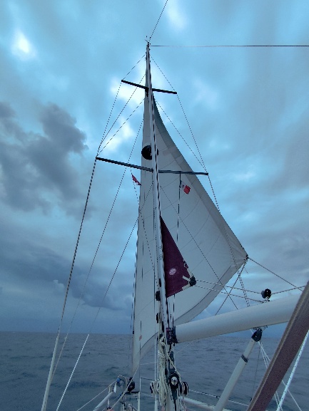 Wir kommen selbst mit unserer alten Genua gut voran und halten das Wetter ständig im Blick. In der Nacht vom 25.3 auf den 26.03 soll eine Gewitterfront mit starken Böen über uns hinweg ziehen und so entscheiden wir uns eine Nacht am Turneff Reff zu Ankern.