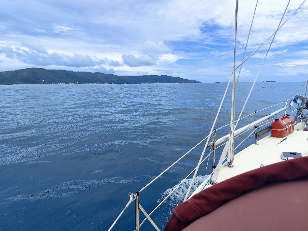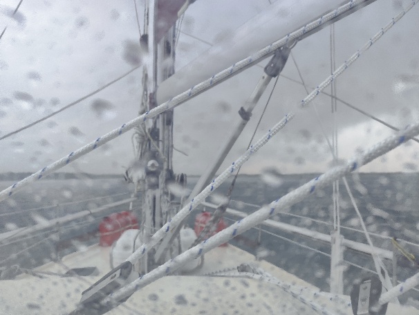 Entweder knallt der Rumpf aufs Wasser und das ganze Schiff vibriert oder aber der Bug taucht richtig in die Welle ein und das Wasser spritzt bis zum Cockpit. Entsprechend machen wir auch wenig Fahrt.