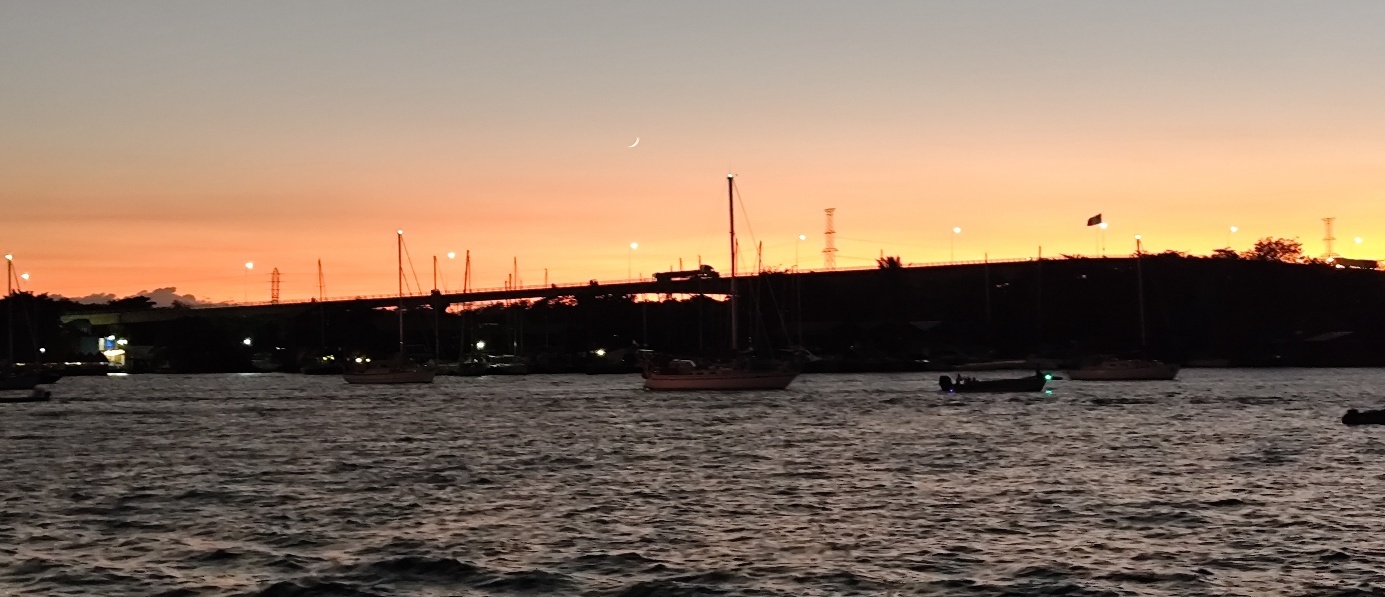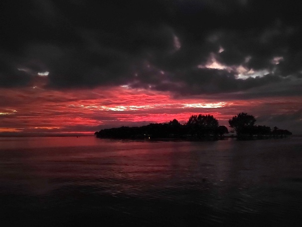 Da der Anker sich nur bedingt eingezogen hatte, legen wir einen zweiten Anker aus, so dass wir etwas beruhigter Schlafen können. Trotzdem sind wir früh wach und erleben einen farbenreichen Sonnenaufgang.