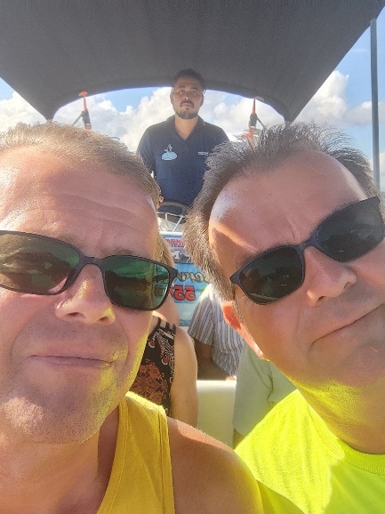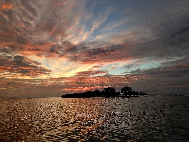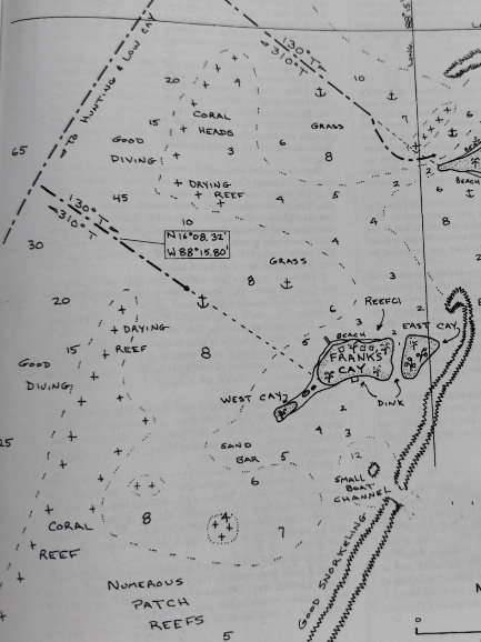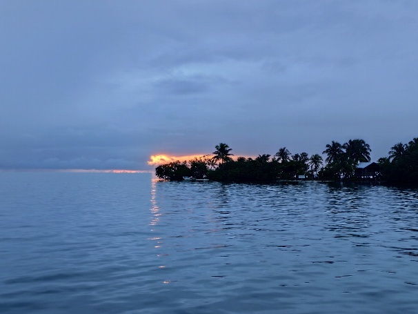 Das versprochene Restaurant ist zwischenzeitlich geschlossen und Besucher auf der Insel wenig willkomen. Wir bleiben an Bord und machen es uns gemütlich. Am nächsten morgen freuen wir uns über den Sonnenaufgang und machen un zeitig los zu den Frank Cays, diese liegen ca. 20 Seemeilen östlich am Außenriff Belizes.