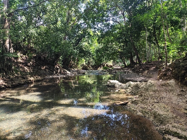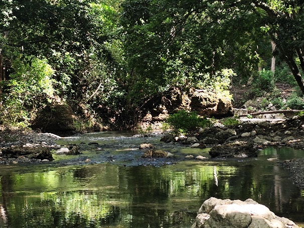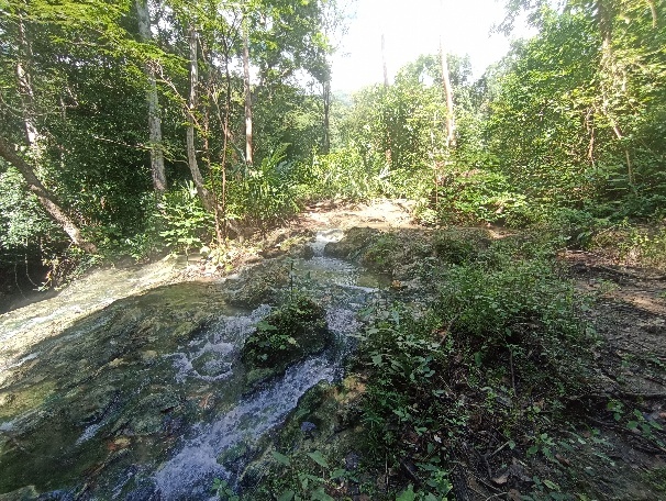 Vom Anlegesteg zum Wasserfall ist es etwa eine ¾ Stunde Fußmarsch. Meistens durch die pralle Sonne. Dann erreichen wir das Waldgebiet, in dem der Wasserfall liegt.