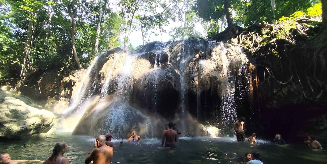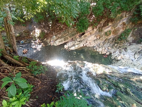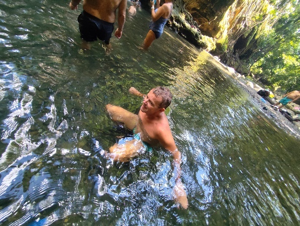 Der Wasserfall selbst ist warm, während der Fluss einen weiteren kalten Zulauf hat, so ist es angenehm auszuhalten.