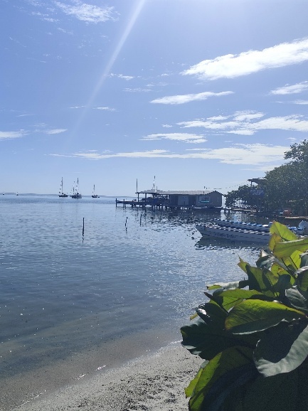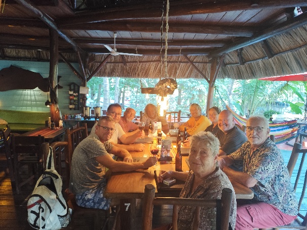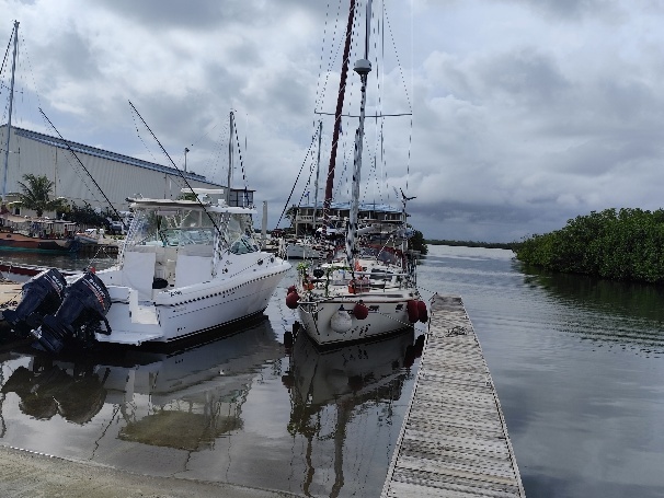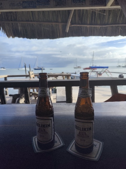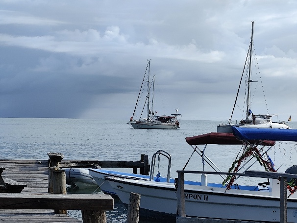 Knapp 210 EUR kostet uns das Einklarieren. Es gibt allerdings nur ein Visum für 30 Tage, im Januar müssen wir wieder vorstellig werden um eine Verlängerung zu beantragen. Zudem besorgen wir uns noch Belize Dollar und ein lokale Telefonkarte. Unser Timing ist gut, wir kommen trocken an Bord zurück, warten den durchziehenden Schauer ab, bevor wir in Restaurant zum Abendessen schippern.