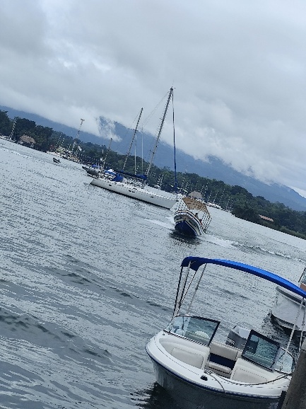 Unser Plan sieht vor, dass wir am Samstag den Golfete überqueren und circa 10 Seemeilen vor Livingston in eine kleine Bucht vor Anker gehen. Hier gibt es auch ein nettes Restaurant zum Abendessen. Gegen 9:00h haben wir in der Nanajuana abgelegt und sind nach gut 2 Stunden vor Anker. Das Abendessen im Restaurant sparen wir uns, es regnet, und zwar richtig.