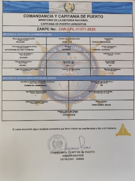 Mit dem ersten Tageslicht fahren wir weiter in Richtung Flußmündung. Kurz vor acht Uhr haben wir dann das Flach vor der Flußmündung passiert und nehmen nördlichen Kurs auf Punta Gorda. Punta Gorda ist der erste „Port of Entry“ in Belize und wir erledigen hier die Einreiseformaltäten.