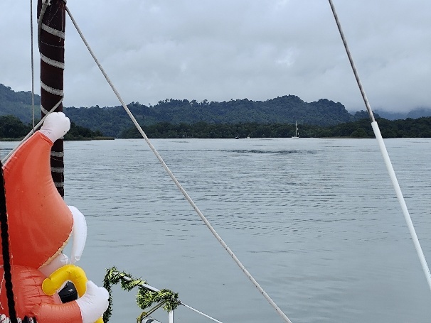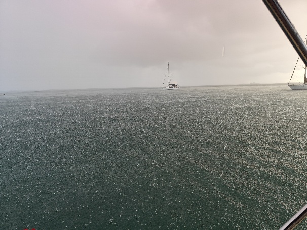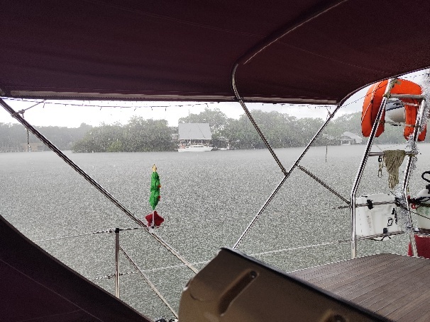Auch für den ersten und zweiten Weihnachtstag ist ausreichend Essen an Bord, zum Glück an beiden Tagen regnet es durchgehend und stark. Den Ablaufstöpsel im Dinghy haben wir für eine Nacht drin gelassen um das Wasser zum Wäschewaschen nicht aus dem Tank nehmen zu müssen. 150 Liter sind in einer Nacht gefallen, etwa 60 Liter/m². Durch den ganzen Regen haben sich ein paar Leckagen gezeigt, die Tom in den nächsten Tagen abdichten muss.