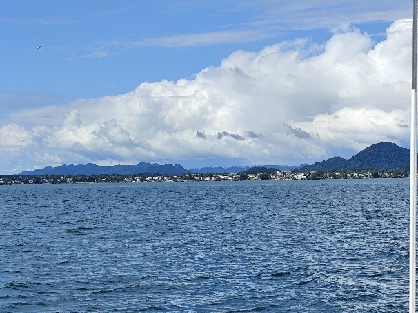 Erst am Samstag, den 27.12., hört es auf zu regnen und es zeigt sich wieder ein blauer Himmel. Wir genießen es, ein bisschen durch Plaencia zu schlendern. Der kommunale Anlegesteg mit seinen bunten Hütten dient der Fähre und den Lanchas als Abfahrtstelle zum Festland und den einzelnen Inseln. Mit Vollgas geht es dann durch Ankerfeld, so dass es tagsüber immer etwas schaukelig ist.