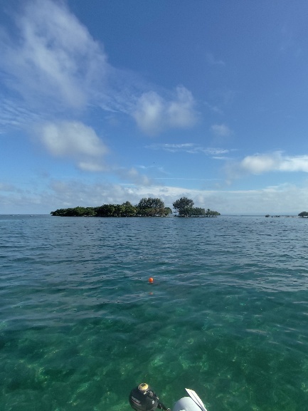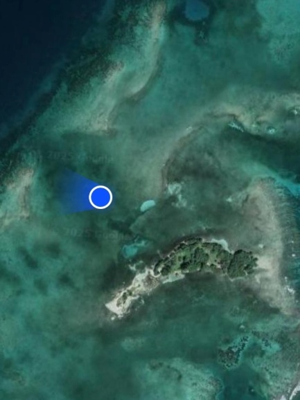Der Ankerplatz vor Punta Gorda ist eigentlich wenig geschützt. Wir hatten in der Nacht aber nur wenig Westwind und so war die Nacht für uns ruhig. Hajo hatte den Revierführer für Belize durchgearbeitet und Ziele für uns rausgesucht. Die erste Bucht, die wir ansteuern ist das Moho Cay. Erst beim Näherkommen, können wir die richtige Insel identifiezieren. Auf der Luftaufnahme kann man gut die „braunen“ Stelle im Wasser erkennen. Es handelt sich um Korallenriffe. Dort ist das Wasser sehr flach und wir können nicht mit dem Boot drüber. Deshalb ist es wichtig, nur bei guter Sicht zwischen den Riffen zu manövrieren.