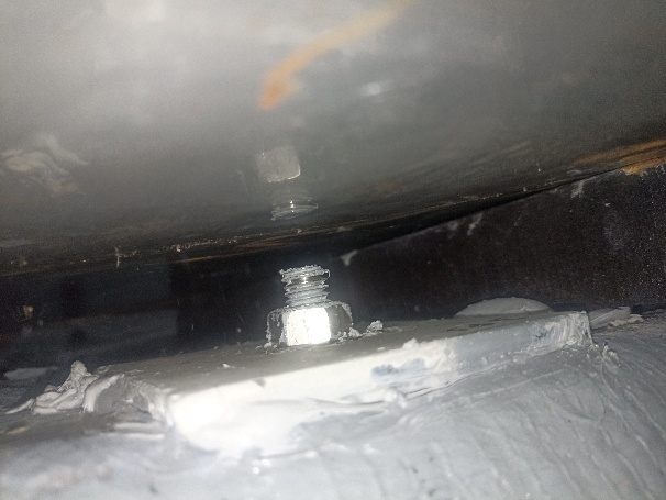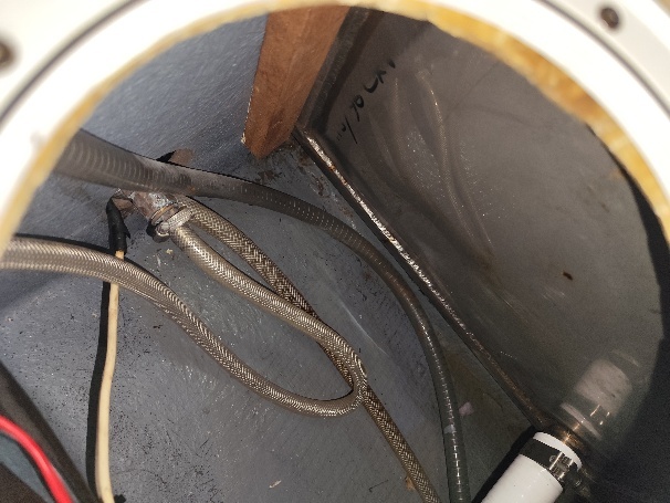 Mit einem Selfie-Stick und dem Handy können wir ganz brauchbare Fotos machen, es sieht alles trocken aus. Wir tupfen mit einem Zewa noch etwas um den Bolzen herum, auch hier gibt es nichts an Feuchtigkeit. Gott sei Dank. Ein Undichtigkeit an der Stellen wären nicht einfach zu beheben gewesen.