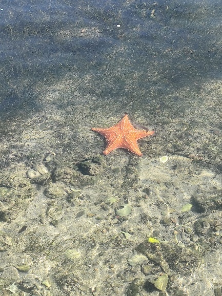 Der Blick über die Ankerbucht ist schön und das Wasser glasklar. Sogar Seesterne liegen hier am Strand.