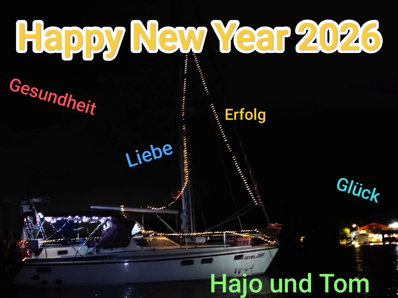 Am Freitag, den 02.01.2026 können wir ablegen und weiterfahren. Euch wünschen wir alles Gute für das neue Jahr 2026. Freude, Liebe, Glück und vor allem Gesundheit sollen Euch bgleiten.