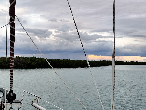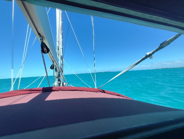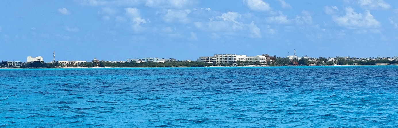 In der Nacht können wir halbwegs schlafen und haben den Wecker auf 5:30h gestellt. Mit dem Tageslicht verlassen wir das Atoll und nehmen Kurs auf Isla Mujeres. Uns geht das Wetter ziemlich auf den Senkel und so werden wir die geplanten weiteren Stopps auslassen. Sonne und Wind zeigen sich aber versöhnlich und so können wir im Vormittag die Segel setzen und den Motor abschalten.